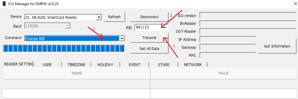 Step 3: If you want change RID of device, select Command 'Change RID' then enter your RID and click 'Transmit'.